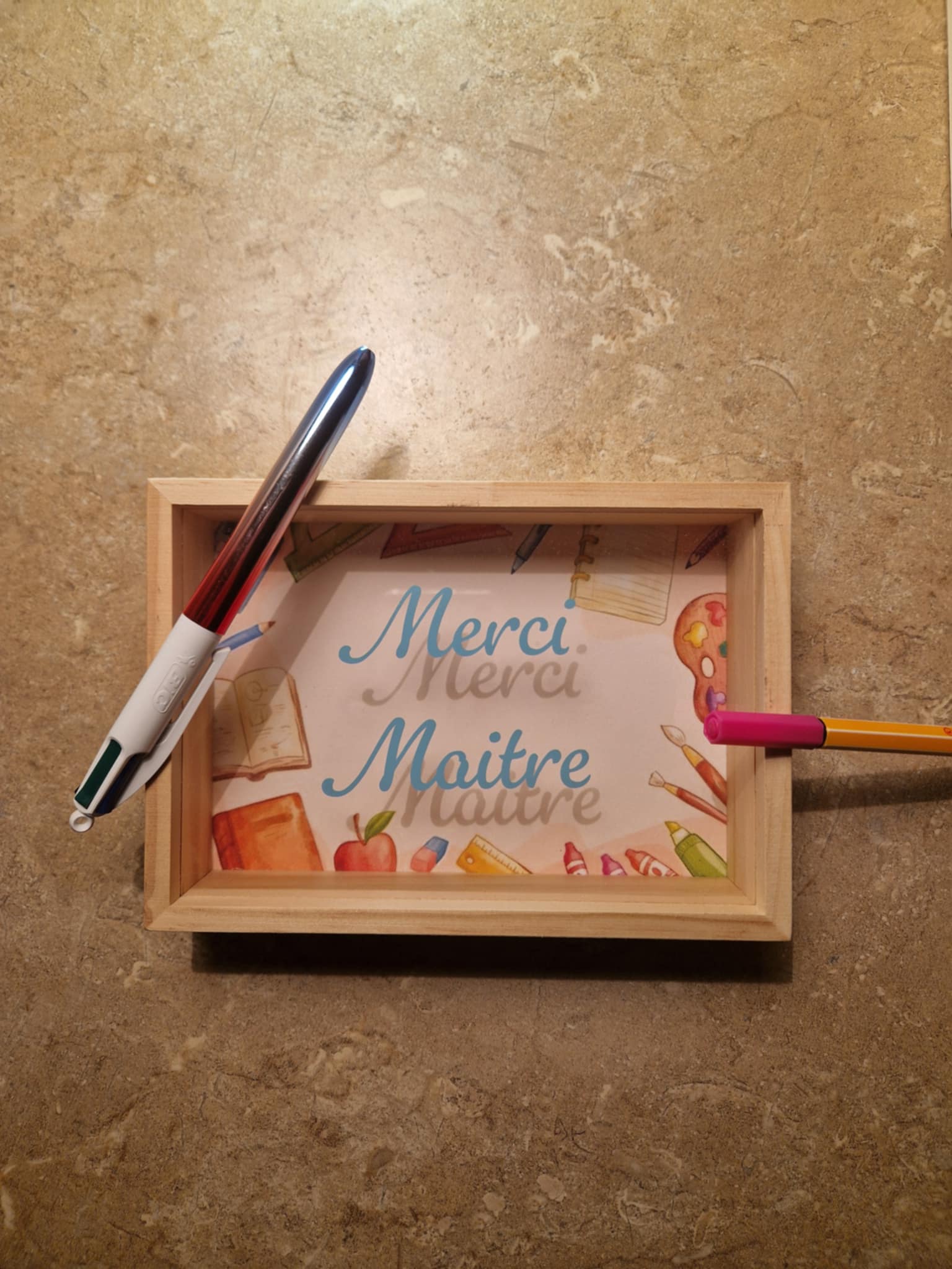 🖼️ Cadre en bois personnalisé – "Merci Maître / Maîtresse / ATSEM / Nounou" 🌟