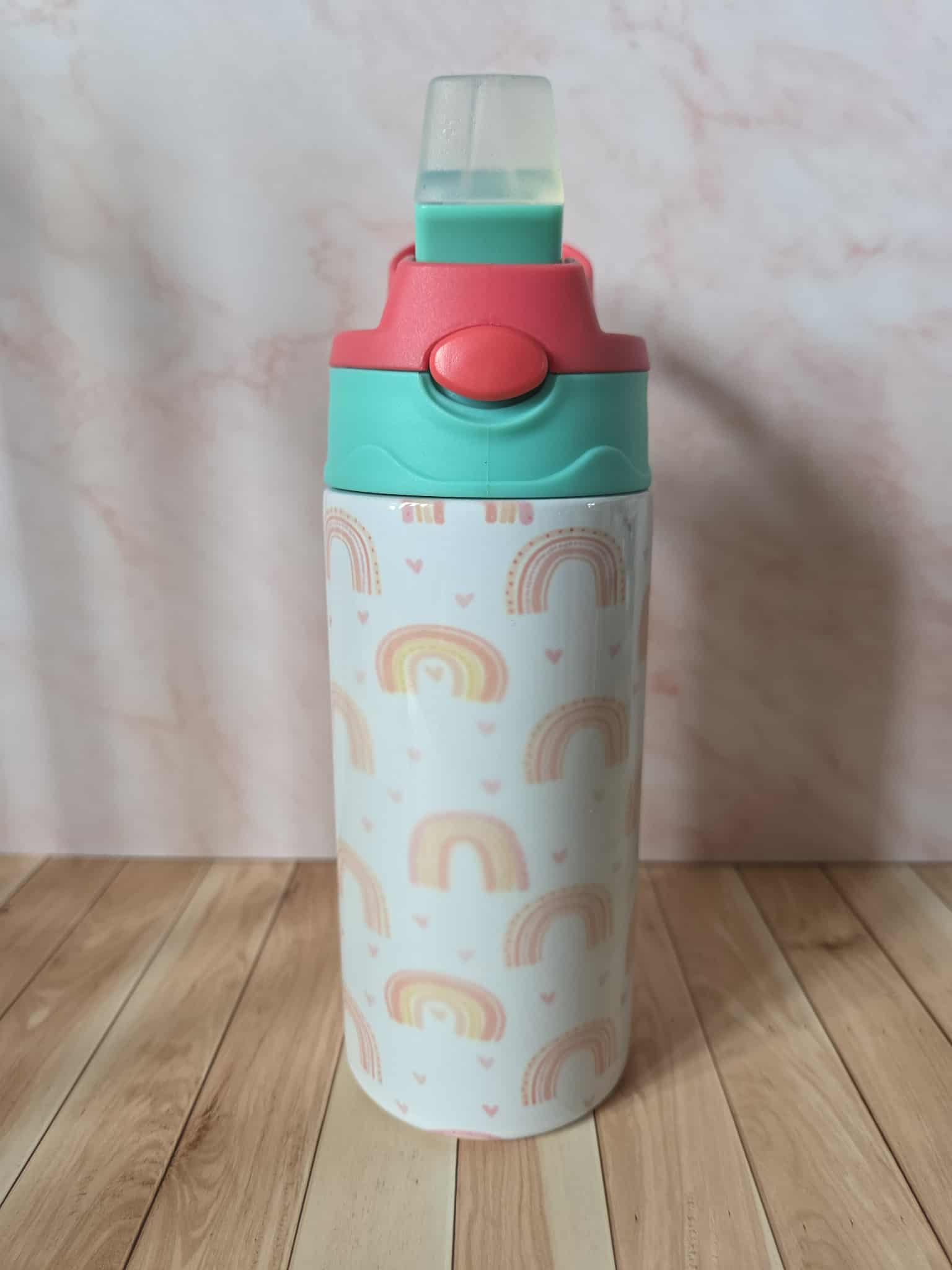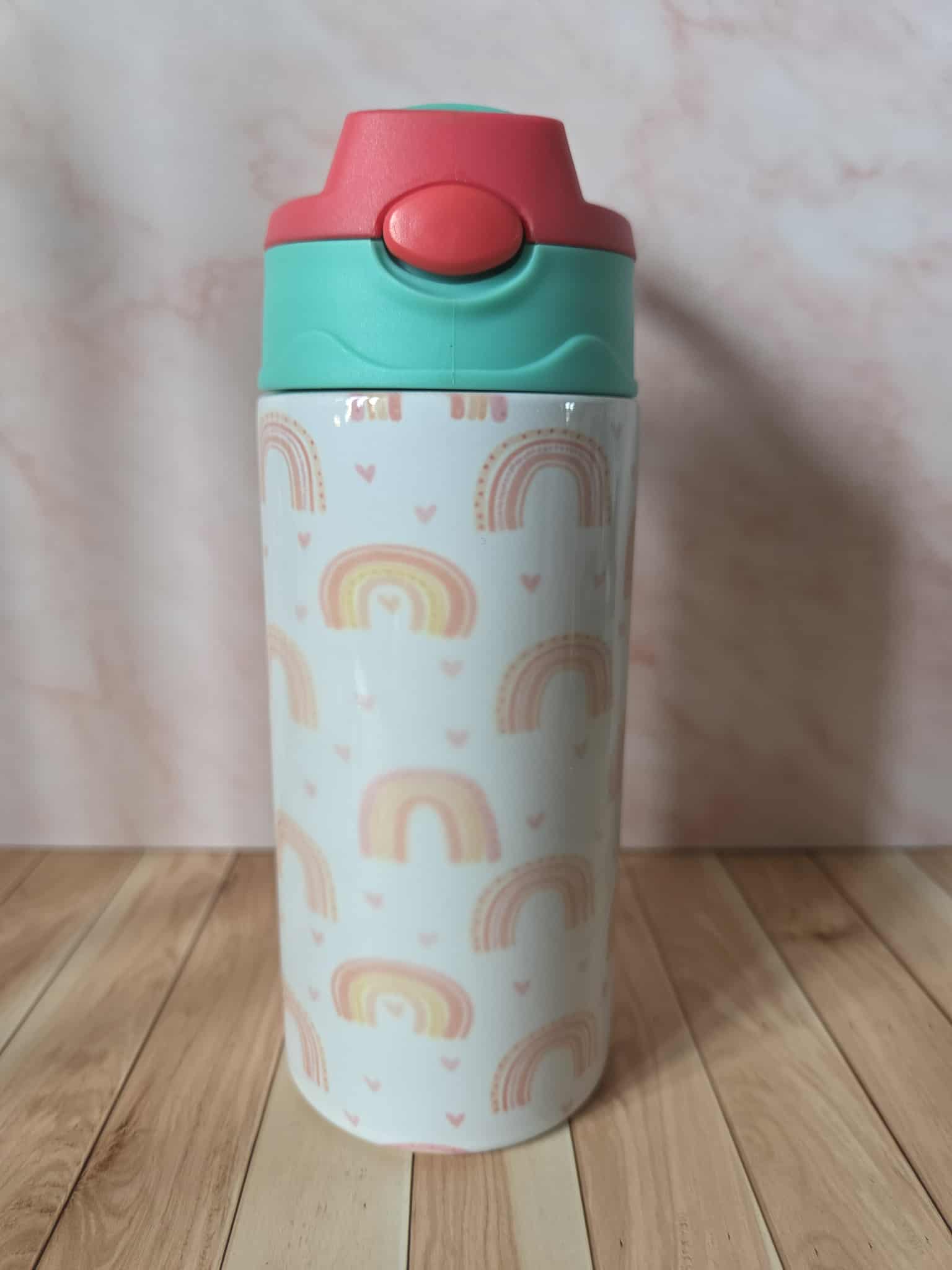 Gourde Enfant Arc-en-Ciel Pastel 350 ml – avec paille et bouchon à vis