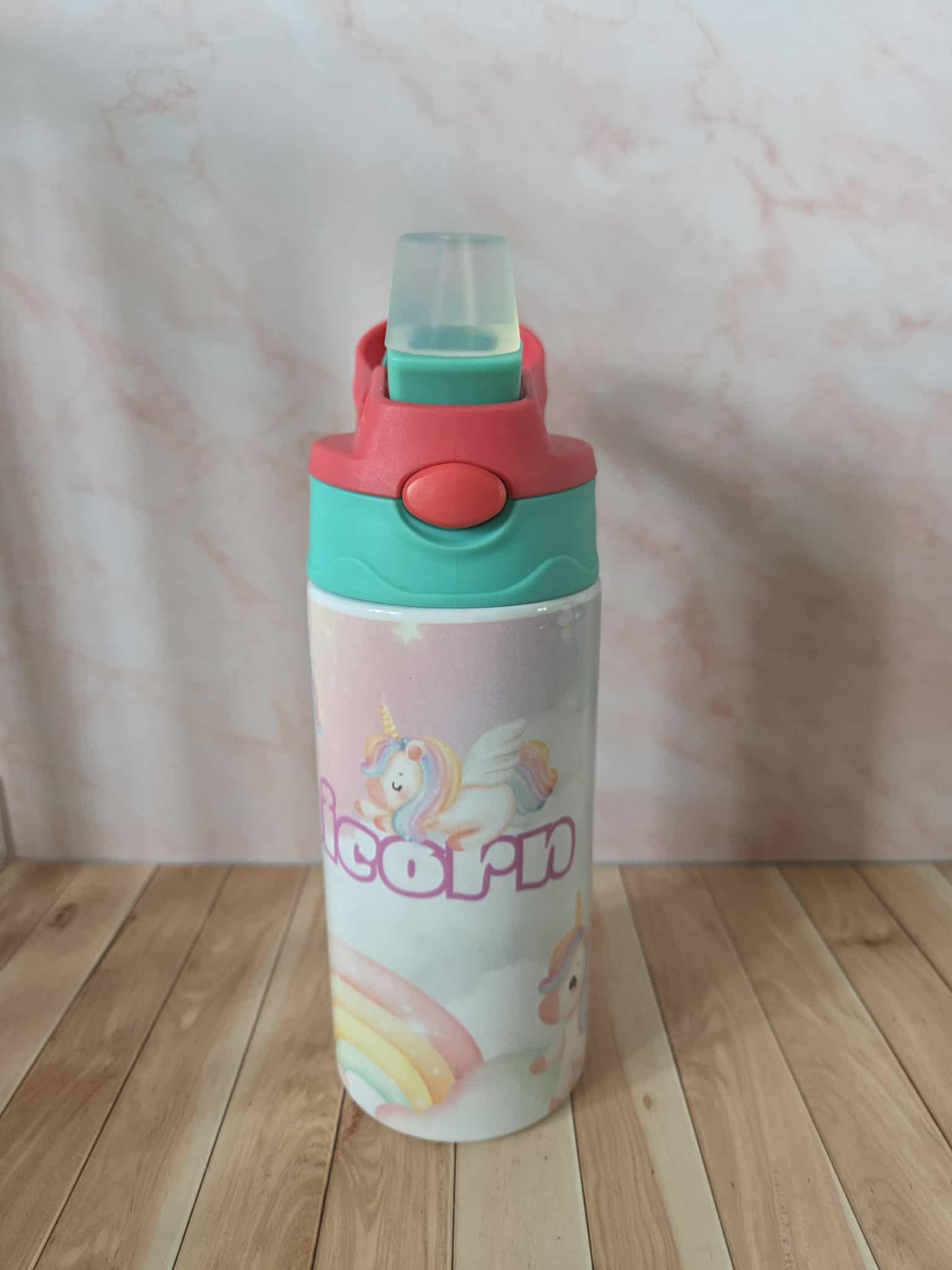 Gourde Licorne Enfant 350 ml – avec paille et bouchon à vis